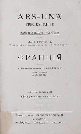 Луи Гуртик, инспектор изящ. искусств г. Парижа; авториз. пер. Н. Соболевского под ред. А.М. Эфроса. — М.: «Проблемы эстетики» М. Марек.